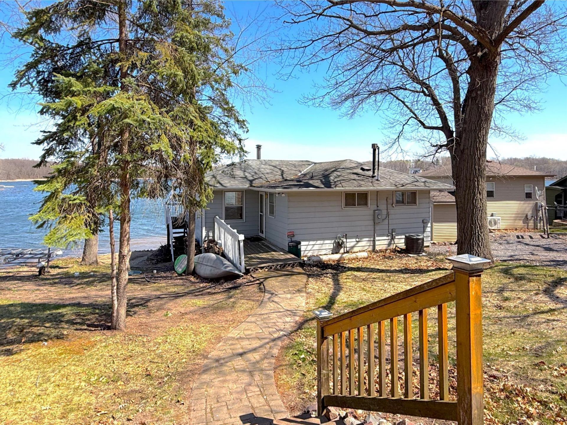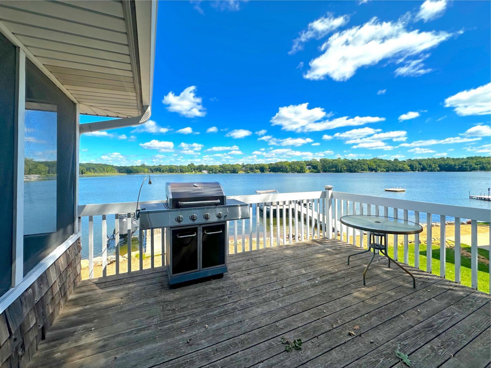 Enjoy lakeside living in this inviting 3-bedroom cabin set on 52 feet of Indian Lake shoreline. Take in the stunning water views from multiple decks, where there's room to relax with your morning coffee or gather with friends for an evening under the stars. The vaulted lakeside screen porch offers a breezy, bug-free retreat, while the primary bedroom gives you the luxury of waking up each day to peaceful lake views. Inside, you'll find a spacious living room anchored by a cozy wood-burning stone fireplace, perfect for chilly nights or rainy afternoons. A functional kitchen and dining area provide plenty of space for preparing meals and sharing them with family, and the three-quarter bathroom adds everyday convenience. The lower-level tuckunder garage makes storing all your lake toys and gear simple and accessible, so you can spend more time fishing, boating, and swimming just steps from your door. With a sandy shoreline ideal for lounging or launching into the water, and mature trees framing the lot to create a sense of privacy and shade, this property is the perfect place to create lasting memories at the lake.