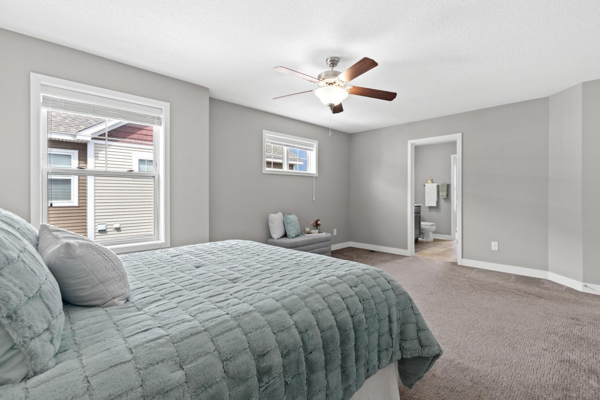 Pristine end-unit townhome in the Laurel Creek community. This 2018-built home features 3 upper-level bedrooms, 3 bathrooms, and just under 1,800 finished square feet. The open-concept main level includes quartz countertops, a large center island, and stainless steel appliances. The upper level offers a versatile loft area alongside a primary suite featuring a private bath and walk-in closet. Laundry is conveniently located on the upper level. Professional deep cleaning and carpet cleaning were recently completed. The property includes a private patio and provides access to the Dayton Parkway I-94 interchange and Elm Creek Park Reserve. Located within the Elk River School District (ISD 728).
