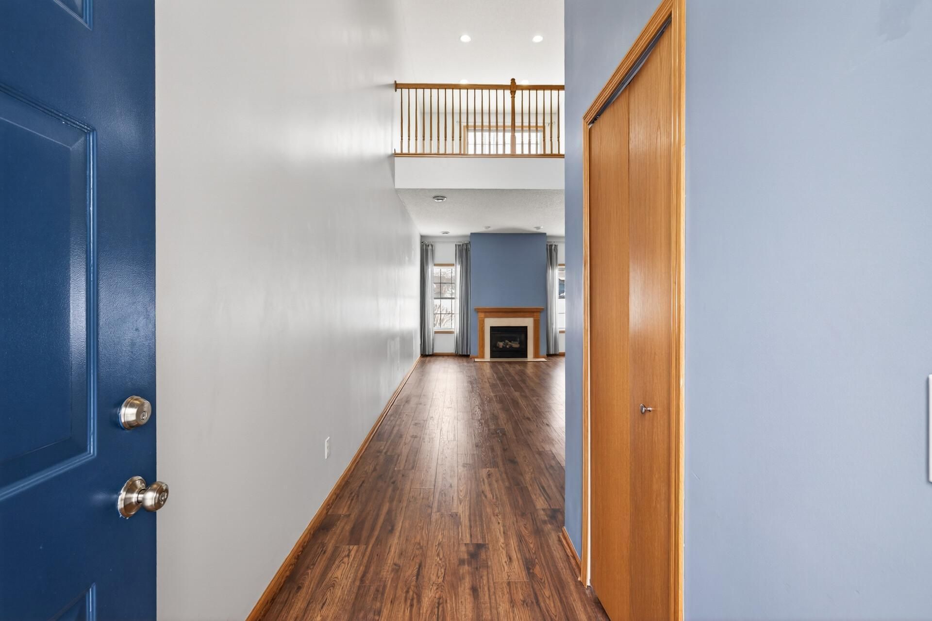 Don't miss this fantastic two-level, 2-bedroom, 2.5-bathroom condo (feels like a townhome) in a well-maintained, private community! An airy 2-story foyer and open staircase greet you. Enter into the main floor living room featuring a gas fireplace flanked by windows looking out to the large yard. The nice-sized kitchen has ample storage, a pantry, and is open to the dining area and patio door. Main floor laundry, and half bath. Warm laminate wood flooring throughout the entire main level and natural woodwork throughout the home. The upper level boasts a large, comfortable loft space, generous-sized guest bedroom and full guest bath. The large primary bedroom features a vaulted ceiling, walk-in closet, and ensuite bathroom with great vanity storage, double sinks, and large walk-in shower. Your 2-car garage has an insulated garage door, keypad access, and space for storage. Brand new roof in 2025. Your walk-out semi-private patio leads to an expansive yard and the community's private walking/biking trails, heated swimming pool, pergola picnic area, and playground. Pets are allowed. This great Apple Valley location is close to schools, shopping, restaurants, public transit, library, parks, and more.
