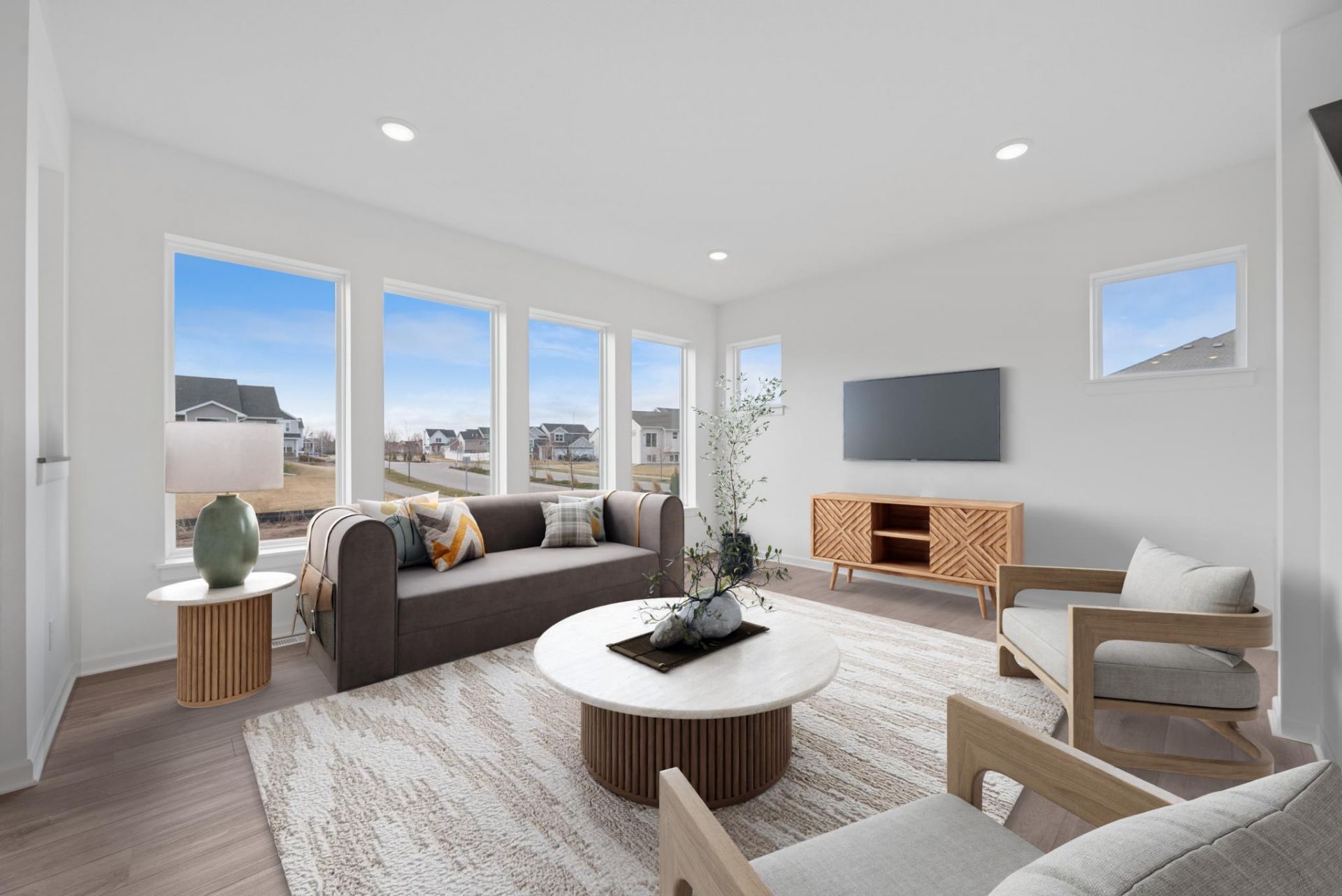 This home is our Crestwood plan which boasts large and numerous windows throughout. Enjoy the open and airy feeling with plenty of sunlight and 9' ceilings on the main floor. Entertain family and friends in this open kitchen with a large island, plenty of countertop space, and a walk in pantry. Work from home in the main floor office with beautiful windows. The spacious owners suite includes large windows, a luxurious owners bath, and a walk in closet. Three more bedrooms and a convenient laundry room rounds out the upstairs. The walkout basement is ready to be finished to add even more value to the home. The 3 car garage adds space for storage and cars. Shakopee has a quaint downtown next to the beautiful Minnesota River, plenty of shopping and dining, and is an easy commute to work in the Twin Cities. Come see all of the windows in this home!