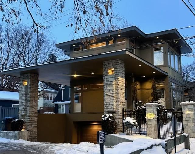 Exquisite prairie-inspired two-story in the highly sought-after East Isles neighborhood. This architecturally striking home offers a beautiful open floor plan designed for effortless living and entertaining, with expansive windows that bathe the interior in natural light and highlight the quality craftsmanship throughout. The chef's kitchen is a true showpiece, featuring premium finishes, abundant cabinetry, exceptional storage solutions, and generous workspace ideal for both everyday cooking and hosting gatherings. The seamless connection between kitchen, dining, and living areas creates an inviting and functional layout. The impressive primary suite delivers a luxurious retreat, complete with a stunning see-through fireplace, private balcony, and custom-designed California Closets offering incredible organization and storage. The fourth room is currently an Office could be a great Nursery or Childs room as well! Spacious secondary bedrooms and thoughtfully updated baths continue the home's elevated feel. Extensive upgrades enhance both comfort and style, while professionally designed landscaping surrounds the property with beauty and privacy, creating a peaceful urban oasis. Ideally located near the lakes, Uptown's vibrant dining and shopping, and miles of biking and walking paths. Two-car attached garage completes this exceptional offering.